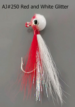 • Load image into Gallery viewer, AJ_250-JigBucktail-1_5oz-Red-White-Glitter