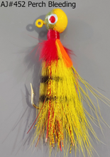 • Load image into Gallery viewer, AJ_452-JigBucktail-1.05oz-Perch-Bleeding